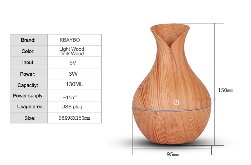 KBAYBO 300ml Humidifier Aroma Diffuser Aromatherapy Wood Grain Essential Oil Diffuser Ultrasonic Cool Mist maker for Office HomeBuy Now On Aliexpress